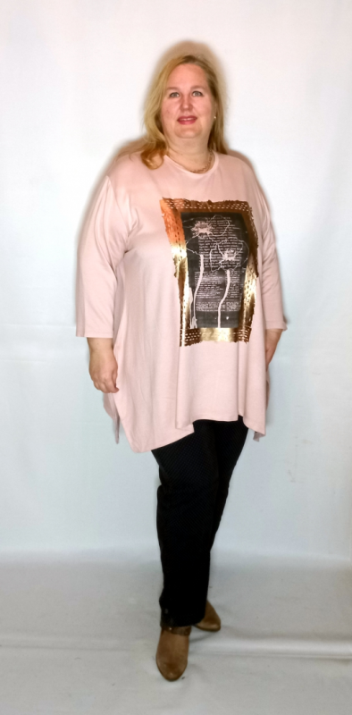 Удлиненная туника А-силуэта выполнена из высококачественного, трикотажного полотна с 95% содержанием вискозы.