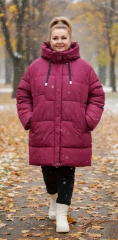 Зимняя куртка длинная больших размеров с капюшоном станет вашим идеальным выбором для холодных дней. Она подойдет, как для прогулки так и для похода на природу.