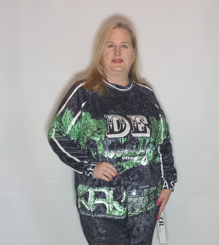 Шикарная  туника- футболка выполнена из мягкого, очень эластичного мраморного велюра с рисунком.