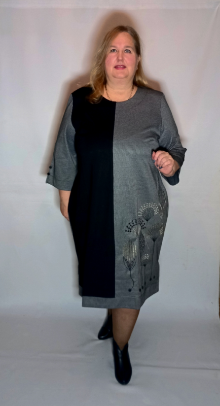 Платье выполнено из плотного трикотажа двух видов : однотонный и с рисунком. Трикотаж приятный, умеренно эластичный