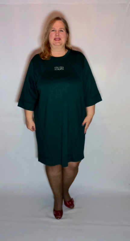 Лаконичное, но элегантное платье туника выполнено из плотного трикотажа. Трикотаж очень приятный  наощупь, плотненький, хорошо скрывает шероховатости фигуры, эластичный.